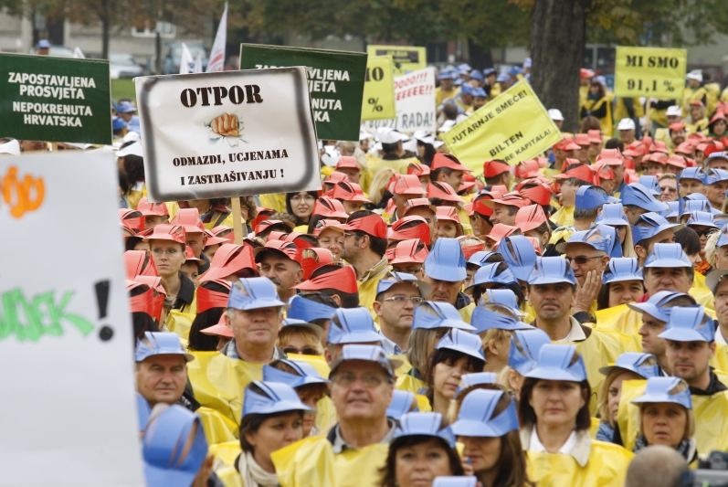 Nezadovoljni otkazivanjem kolektivnog ugovora i smanjenjem prava prosvjetari i dio medicinara izlaze na ulicu. Sindikalni prosvjed počinje okupljanjem na Trgu Francuske Republike u 11 sati, odakle će se u povorci uputiti Ilicom do Trga bana Jelačića. Manji broj od oko 1500 odabranih potom će na Markov trg do zgrade Vlade.