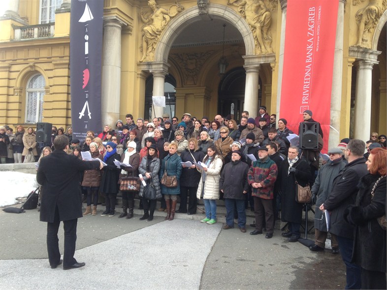 Skup je, uz zaposlenike zagrebačkog HNK-a, okupio zaposlenike brojnih drugih kulturnih ustanova - Lada, Muzeja Mimare, Hrvatskog državnog arhiva, Hrvatskog restauratorskog zavoda.