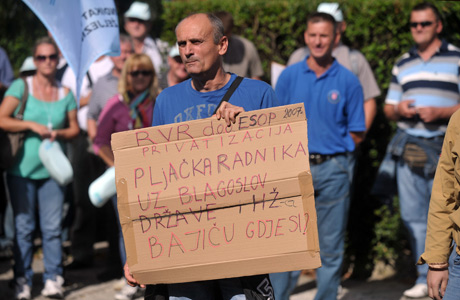 Prosvjednici su prozivali predsjednika Uprave Željka Mića, članove Nadzornog odbora i ostale članove Uprave tvrdeći da su glavni krivci što RVR ima porezni dug veći od 24 milijuna kuna i što im nisu isplaćene plaće za lipanj, srpanj i kolovoz, te što su prekinute uplate svih obustava radnika, uključujući i kredite podignute za otplatu udjela.
