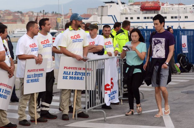 Prvobitno su prosvjednici, kako su pojasnili, imali namjeru blokirati isplovljavanje brodova na pristaništima Sv. Duje i Sv. Petar, ali je uplovljavanje s njih jutros preusmjereno na carinsko pristanište. Prosvjednici su se zato okupili kod carinskog gata.