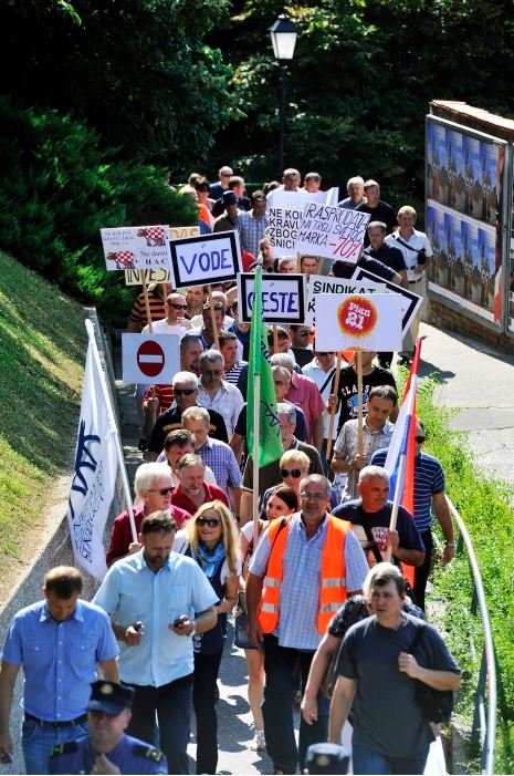 Dok se održavala sjednica Vlade, ispred Banskih dvora se prosvjedovalo. Sindikat Inaš traži spas nacionalne naftne kompanije, a cestarski sindikat se protivi davanju autocesta u koncesiju, zbog čega u listopadu organiziraju prikupljanje potpisa za referendum.
