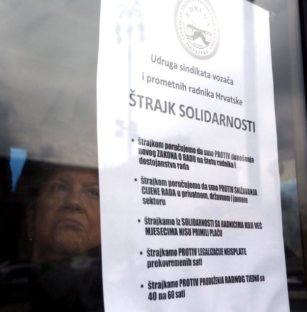 DVOSATNI štrajk solidarnosti protiv izmjena Zakona o radu (ZOR) između 12 i 14 sati provest će sindikati udruženi u Savez samostalnih sindikata Hrvatske, Nezavisne hrvatske sindikate, Maticu hrvatskih sindikata, Hrvatsku udrugu radničkih sindikata i Udrugu radničkih sindikata Hrvatske. Sindikati traže da se ZOR povuče iz procedure, što im je uvjet da se vrate na pregovore s Ministarstvom rada i mirovinskog sustava. Štrajk solidarnosti formalno se održava zbog neisplate 25 plaća radnicima Zdravstveno-rekreativnog centra u Lipiku, koji je u većinskom vlasništvu države, te neisplate šest plaća u Areni Pula, koja je u privatnom vlasništvu.