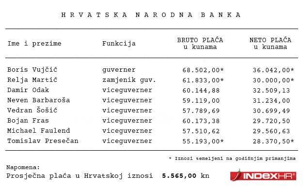 Donosimo pregled imovine Vujčićevih viceguvernera, uz napomenu da brojke koje se nalaze odmah ispod njihovih imena predstavljaju bruto i neto plaću. U slučaju viceguvernera Relje Martića i Tomislava Presečana navedeni su podaci iz 2012. godine, kada su predane zadnje imovinske kartice. No, njihove su plaće tada bile znatno manje nego danas;prošle godine Vujčić i njegovi viceguverneri povećali su si iznose plaća za čak 34 posto.